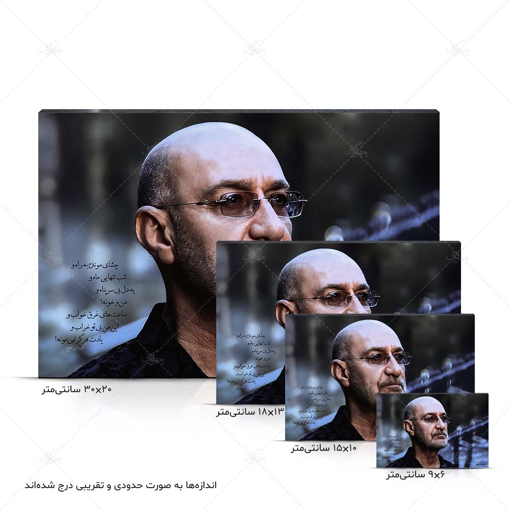 لطفاً توجه داشته باشید که اندازههای ذکر شده به صورت حدودی و بنابر عرف صنف چاپ عکس عنوان شدهاند و اندازههای واقعی تابلوها چند میلیمتر کوچکتر از اندازههای ذکر شده هستند.