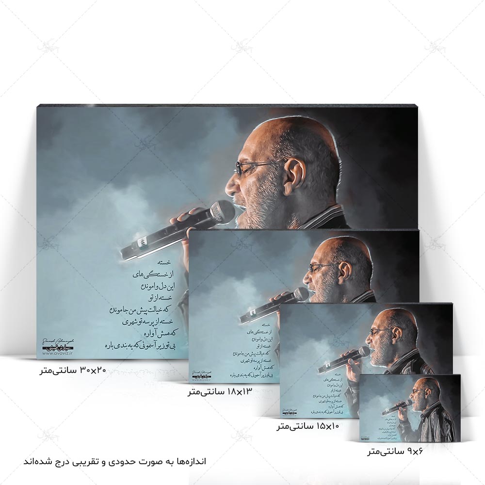لطفاً توجه داشته باشید که اندازه‌های ذکر شده به صورت حدودی و بنابر عرف صنف چاپ عکس عنوان شده‌اند و اندازه‌های واقعی تابلوها چند میلی‌متر کوچکتر از اندازه‌های ذکر شده هستند.