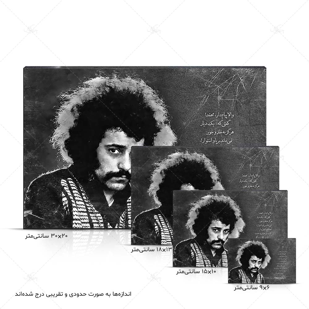 لطفاً توجه داشته باشید که اندازههای ذکر شده به صورت حدودی و بنابر عرف صنف چاپ عکس عنوان شدهاند و اندازههای واقعی تابلوها چند میلیمتر کوچکتر از اندازههای ذکر شده هستند.